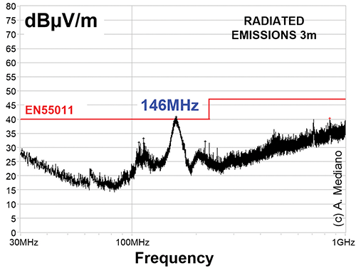 圖1:測試產(chǎn)生的輻射EMC問題